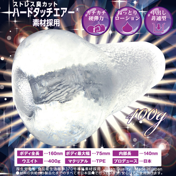 | 尖った刺激が一押し♪ぷりっと高弾力なハードタッチエアー素材を使用したクリアな国産製オナホール(非貫通型)。 優しげな丸い見た目とは裏腹に、三角形の挿入口やホール内部の三角形状ヒダが、エッジの効いた鋭い刺激を生み出します♪「撫でる」「かかる」「擦る」の3つのギミックで貴方をハードに昇天させる!ローション付属 |