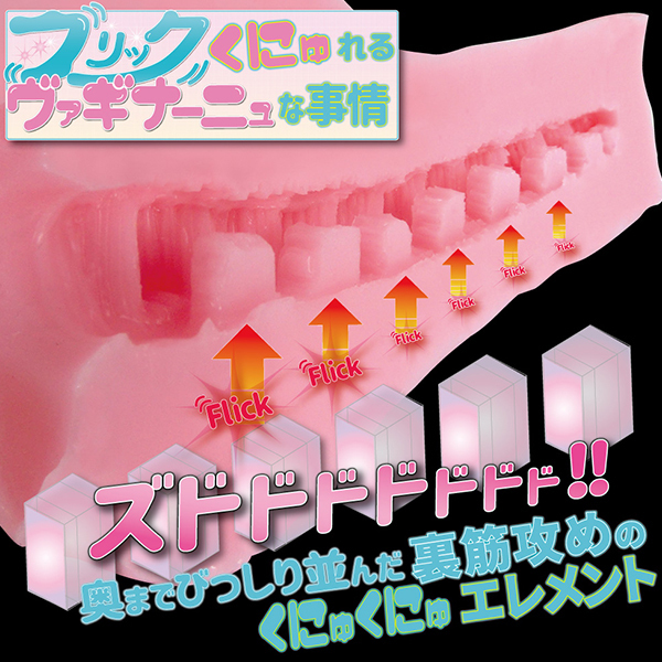 | 四角いキューブを奥までびっしりと配置!ギザギザ溝入りのノコギリ状壁で左右を責めつつ、四角のフリックヒダで裏スジをくにゅくにゅと刺激する♪ヒダ感溢れるライトニング刺激に身体中をビリリと快感が駆け巡る!素材には累計500万個突破した高伸縮&高弾力のバンジータッチを採用。 重量230g、全長16cmの非貫通ハンディオナホ◎ねっとりローション付、日本製 |
