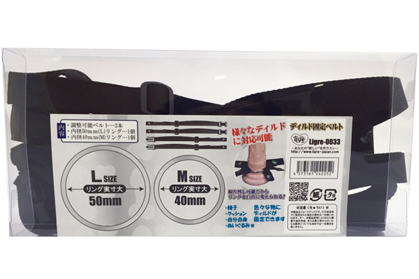 パッケージ:12.0×26.0×3.0cm 本体:リングM内径4.0cm・リングL内径5.0cm・ベルト4本(55.0〜80.0cm×2.0cm) 重量:51g |