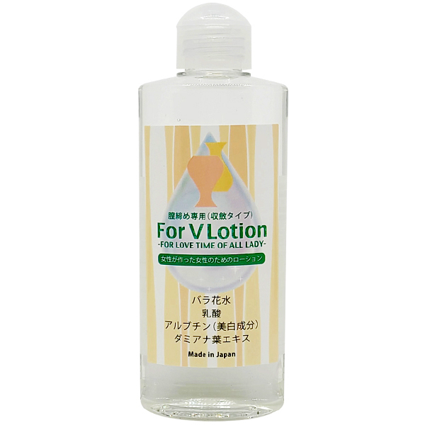 | バラ花水、乳酸、アルブチン(美白成分)、ダミアナ葉エキスなど美白効果が期待できそうな良成分がしっかり入った「For V Lotion 200ml」。 女性が作った女性のためのローションで、美白ケアやスペシャルな女性を目指したいときに♪ |