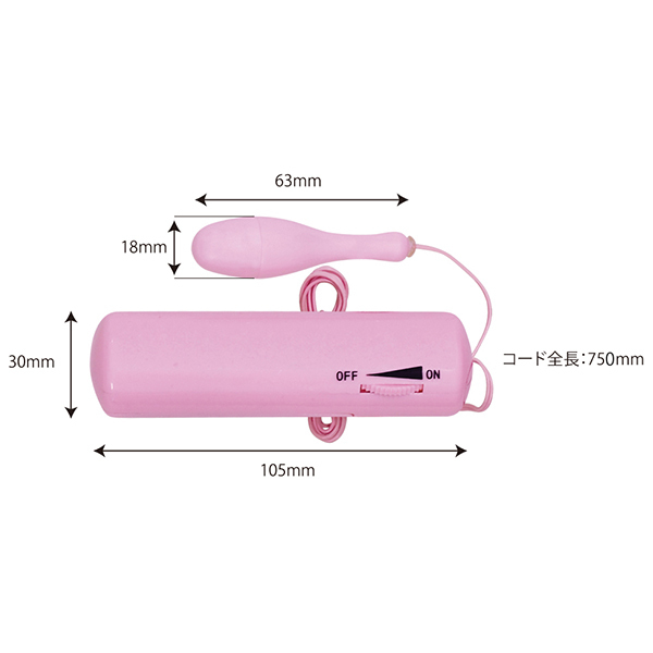 パッケージ:14.4×11.6×4.5cm 本体:ローター6.3×1.8cm・コントローラー10.5×3.0cm・コード長75cm 重量:45g 電池:単四電池×3本使用 |