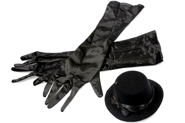 Mサイズ(平置き):B37〜43cm・W33〜40cm・Hフリー 丈:前身頃68cm/後ろ身頃115cm セット内容:ワンピース(背面ファスナー)・ロング手袋×2(全長42cm)・ミニハット(クリップ留め) |