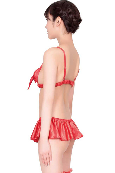 | カラダを魅力的に盛りたい時に、絶妙なバランスでボディラインをアピールしてくれる、真っ赤なリボンが大人エレガントなブラセット!柔らかな手触りでふんわりとカップを包み、胸の色気をアップ。 スカート一体型のショーツは、Tバックになっていて可愛らしさの中に大人の色気さをプラスしたい方にオススメ |