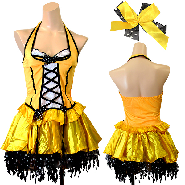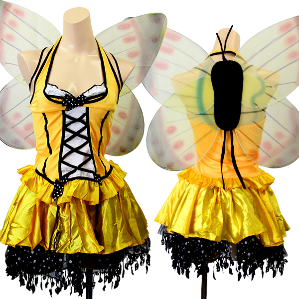 | カラフルで大きな蝶々フォルムの羽付き♪セクシー&キュートなミツバチ風のコスプレ衣装。 コルセット風の編み上げトップス&ボリューミーな光沢サテンのミニスカートがセットになった上下2ピースタイプ!柔らか素材のホルタートップスはビスチェのようにガーターストラップがついたセクシー仕様!スカート裾にはゆらゆらと揺れるシースルーの飾りをたっぷりON♪羽はゴム& ※セット内容以外は付属しておりません。 |