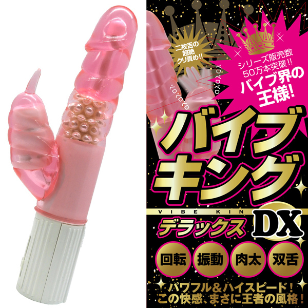 | バイブ界のキングが降臨!パワフルさとハイスピード感で快感の頂点を目指す、大人気シリーズ新作の「バイブキングDX」。 力強くかき回す回転機能&芯まで響く強力振動に加えて内蔵パールの刺激をプラス!肉感たっぷりな弾力のある三段ボディと2枚舌のクリバイブで快感の嵐を巻き起こす電池式バイブです。 単三電池を3本使用、ピンクカラー |