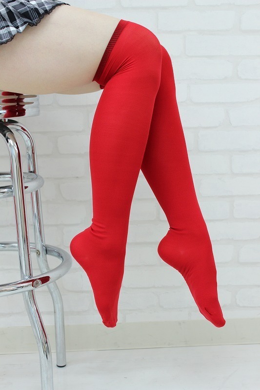 コスチュームのアクセントに!ポップなレッドカラーのニーハイ。
