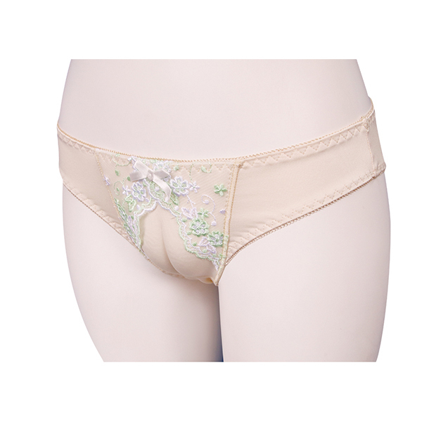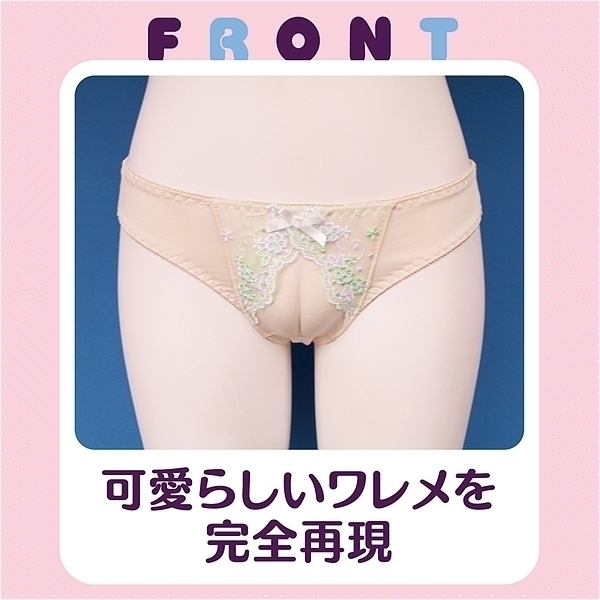 | 可愛らしいワレメを完全再現。 おとこの娘のオシャレは下着から、ワレメがくっきりと映るショーツはレースが可愛らしいフルバックショーツ。 ワレメアピールで視線を釘付け! |