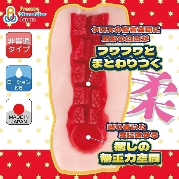 | 超柔らか素材!パンチの効いたデカサイズ650g!クロスの密着空間に扇形の凸凹がふわふわとまとわりつく外側内側超柔らか二層構造!辿り着いた先に広がる癒しの無重力空間、病み付きになり動きがとめられない感触! |