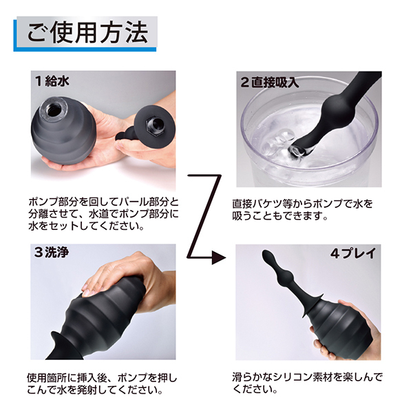 | 洗浄とプレイ、どちらも出来る。 同時に出来る。 洗浄しながら快感を楽しめるシリコンアナル洗浄器。 ポンプは380mlの大容量!奥まで挿入して洗浄出来るからしっかり衛生的にアナルプレイを楽しめます。 素材も摩擦を減らして負担の少ないスムースタッチシリコン採用。 スムーズな挿入が可能な先端形状に少し大きめのボールが局部をボコッと刺激するプラグインウォッシャータイプ。 |