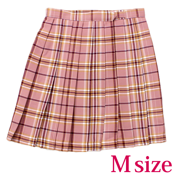 【830円★数量限定】ポケット付きのチェック柄プリーツスカート単品 ピンク×キャメル Mサイズ<お一人様1点限り>