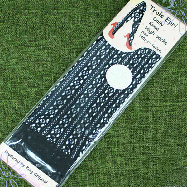 【130円★数量限定】レース付き花柄メッシュニーハイソックス 黒 140〜160cm<お一人様1点限り>
