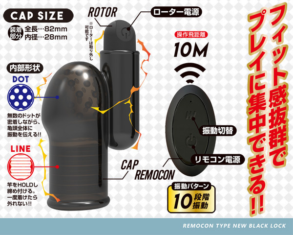 | 爆発的人気の亀頭責めローター「ブラックロック」シリーズ最新作!小型リモコンによる遠隔操作でハンズフリーで楽しめるUSB充電式ローター。 フィット感抜群のキャップ内には密着感を高めるドットと横溝を配置!サオをギュッと締め付けながら亀頭を細かに刺激する!振動は10段階搭載、操作飛距離は10mまで対応。 防水式でお手入れ簡単。 |