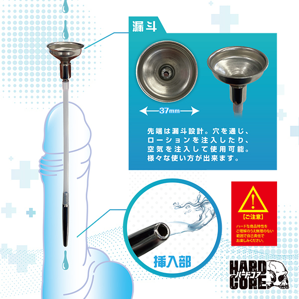 | 極める者だけが味わえる悶絶快感。 荒々しい刺激が楽しめるグッズブランド『ハードコア』シリーズに、漏斗付きプラグがラインナップ!本体フロントに備わった漏斗から、液体や空気を入れLet’s play!!チューブはメディカルグレードシリコン素材で柔らいから、ナカに入れても安心。 挿入部はステンレス製で、温冷感プレイも出来る。 もちろん丸洗い可能なので衛生的。 極めし者のみ許された快感を愉しもう。 <ハードコアシリーズとは?>頭が真っ白になるほどの未知なる刺激…コントロール不能な快感….目指すはエキスパート。 極める者だけが味わえる、気絶しそうなほどの悶絶快感。 エーワンが送る、ハードで本格的な使用感を体感できるグッズブランドです。 |