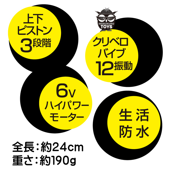| 毎秒3往復!超高速ピストンで奥を貫く6Vモーター内蔵の電池式バイブ。 リアルでは体験できない3段階スピードでドコドコと激しく奥突き!さらに12種類の目にも止まらぬ高速クンニで追い打ちをかける♪単4電池を4本使用、ブラックカラー |