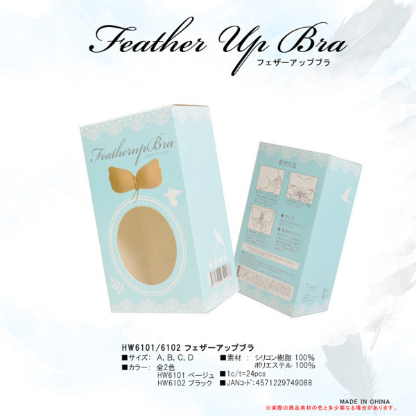 | 寄せて上げて谷間もメイク♪天使の羽型シリコンブラ「フェザーアップブラ ベージュA」。 羽のようなカップがボディに馴染みやすいベージュカラーのモールドブラ!カップ内側は粘着シリコン樹脂、外側はサラリとした肌触りのポリエステル素材です。 中央はアジャスターで自在に調整できる編み上げ仕様!胸のボリュームを強調したい場合は少し上目で着用し、紐を持って留め具を上下させるだけで自由に谷間をメイク出来ます。 【着用方法】両手でカップを外に向けて反らし、最適な位置にあわせてから外に反ったカップを胸の方向に戻して、ふちが胸につくように指先でなぞって下さい。 左右着用後、両手でカップをしっかり押さえて定着させ、留め具をスライドしてお好みで調整して下さい。 粘着効果が薄れた際は、一度水洗いし乾燥させてから再度着用して下さい。 ※サイズは画像を参考にお選びください ※通常よりワンサイズ小さめが綺麗に着用できる目安です ※Bサイズ(h00035)もございます |