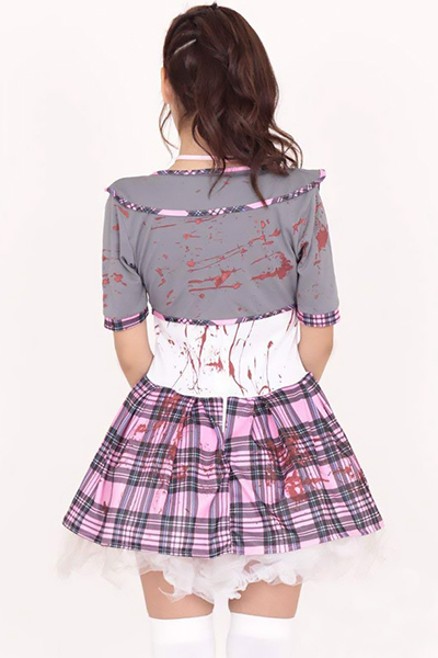 | 思わずキャーッと叫んじゃう、こわ〜いゾンビ風セーラー服コスチューム。 ●グレー×ホワイト×ピンクチェック●ワンピース・ボレロ・ネクタイのお得なセット●ボリュームたっぷりのパニエ付きスカート●血痕プリントがリアリティ満載。 この姿を見た瞬間、誰もが絶叫!仮装パーティーやイベントにオススメのホラーコスプレ衣装です。 ※こちらの商品は受注発注商品の為、ご注文から発送まで2〜3営業日掛かる場合が御座います。 |