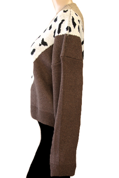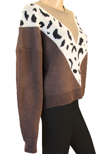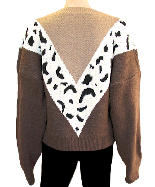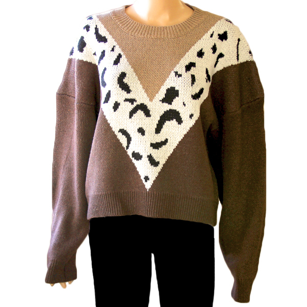 【1180円★数量限定】V字ラインのヒョウ柄ニットセーター Mサイズ ブラウン<お一人様1点限り>