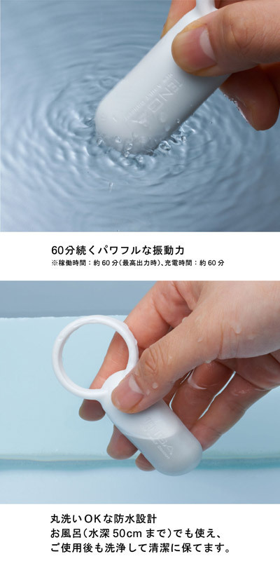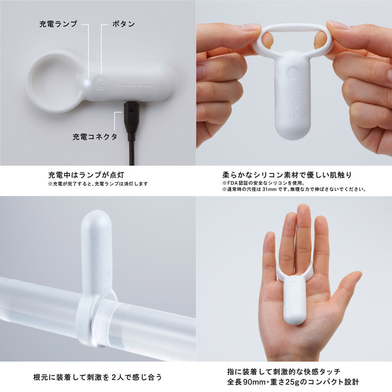 | 濃密プレイをお約束♪カップルで楽しめるTENGA製ローター。 ●男性器に通して使用する電動リング●ソフトシリコン製でフィット感抜群●60分のフル充電で60分連続使用可能●強弱×5・リズム×2の合計7種振動●電源ON/OFFはボタン長押し●水深50cmまでOKな防水仕様(USB差込部金属もサビ・感電はありません)。 ペニスに装着しても、指に通して愛撫用としても使えるラブグッズ!弱→強の5段階振動と2種のリズムパターンがループするワンタッチ操作も快適プレイの秘密。 ローションはウォーターベースタイプのみ併用可能です。 ※ACアダプタは付属しません。 充電には別途パソコン、もしくはUSB端子のついたACアダプタが必要です |