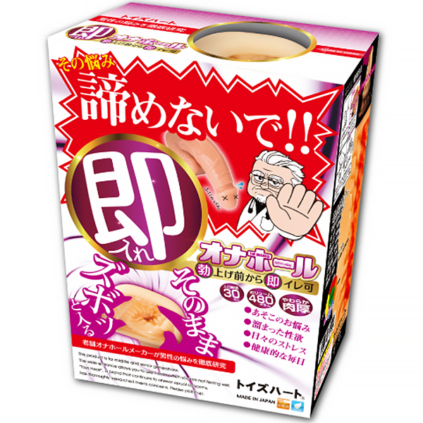 | 前戯不要で即マン可!勃上げなくても入れれるオナホ、ここに完成!挿れ易いだけじゃなく気持ちイイ。 入り口をガバっと広げてムスコに被せます。 奥から空気を抜けば吸い付いてムスコを離さない!年齢を重ねる事でバキバキに勃たなくなったあなた、半勃ちでも使える業界最前線をご堪能あれ。 |