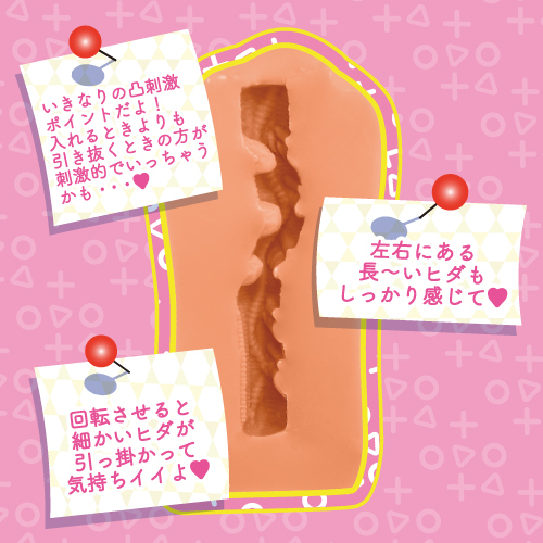 入り口を入ると連続快感突起がお出迎え!大きめの突起が引っ掛かるように高刺激を与え、奥には細かなヒダが待ち受ける。