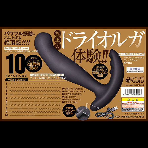 | 前立腺と会陰のニ箇所を刺激してくれるアナルバイブ「ENEORGA3.0」です♪強弱含む10種類の振動パターンを搭載した豊富な振動バリエーションが自慢でボディはシリコン製!比較的ストレートで扱いやすく、先端の膨らみは前立腺にフィットしやすくネックは細身♪入れっぱなしでもアナルへの負担が少なく初心者でも挿入しやすくなっています!会陰を刺激するウェーブ状の突起が付いた部分にはモーターが内蔵されており、挿入シャフト先端の内蔵モーターと連動して絶妙な振動刺激を与えてくれます♪電源はUSB充電式で120分のフル充電で連続稼働60分!生活防水仕様なのでプレイ後に丸洗いできてメンテも簡単♪豊富な振動バリエーションでドライへと導いてくれます。 ●メーカー型番:TMTG-011 |
