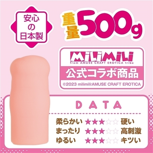 | 日本製。 milimili:AMUSE CRAFT EROTICA公式コラボ商品。 『おしかけJ●彼女!エチエチプニプニオナホDX』を再現!!生きた肉壁のように肉棒に絡みつき搾り取る、スムーズで滑らかな挿入感。 肉棒を包み込む柔らかい肉壁、揉みこまれ締め付けるような弾力性。 原画:風瑛なづき●メーカー型番:TMT-1717 |