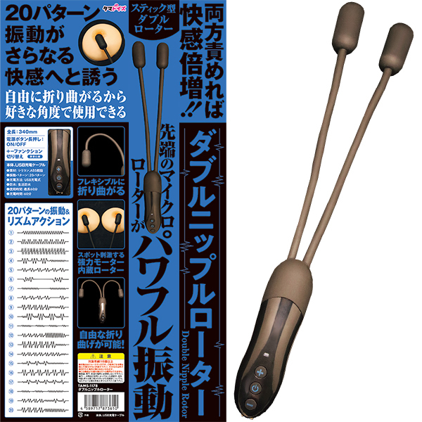 | ダブルローターで同時攻略!スティック型ダブルローターはフレキシブルに折り曲がり、自由な折り曲げが可能! 両方責めれば快感倍増!!自由に折り曲がるから好きな角度で使用できる。 先端のマイクロローターがパワフル振動するスポット刺激する強力モーター内蔵ローターは20パターン振動がさらなる快感へと誘う。 ●静音仕様●振動パターン:20パターン●生活防水●使用時間最長60分、充電時間60分●メーカー型番:TAMS-1178 |