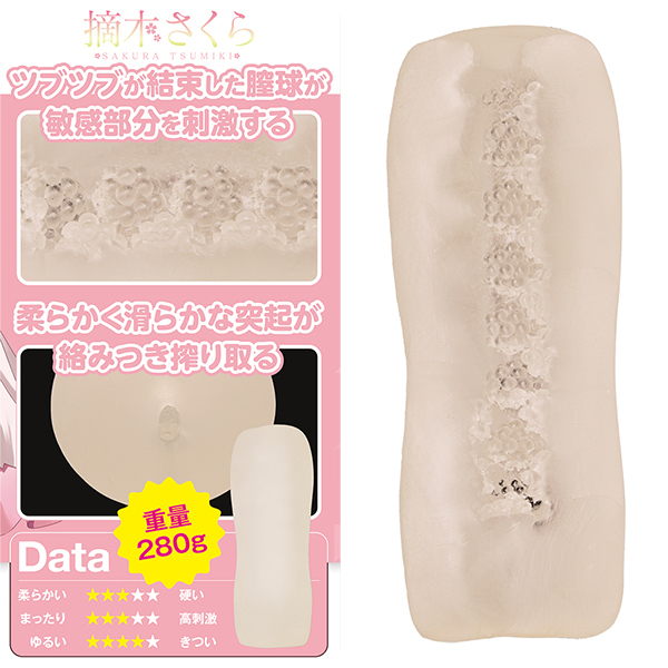 | タマトイズの専属Vtuber「摘木さくら」との公式コラボ商品です♪中型サイズの非貫通オナホで、使いやすさと心地よさを兼ね備えています!内部にはツブツブが結束した膣球構造があり、滑らかな突起がしっかり絡みつき、程よい刺激を生み出します♪プニプニとした柔らか素材を採用しているので、根元まで優しく包み込む設計です!280gの適度な重量で、手にフィットするサイズ感もポイント♪開封後すぐに使えるよう、ローションも付属しています!イラストは樋上いたるが手掛け、こだわりのデザインが魅力です♪ |
