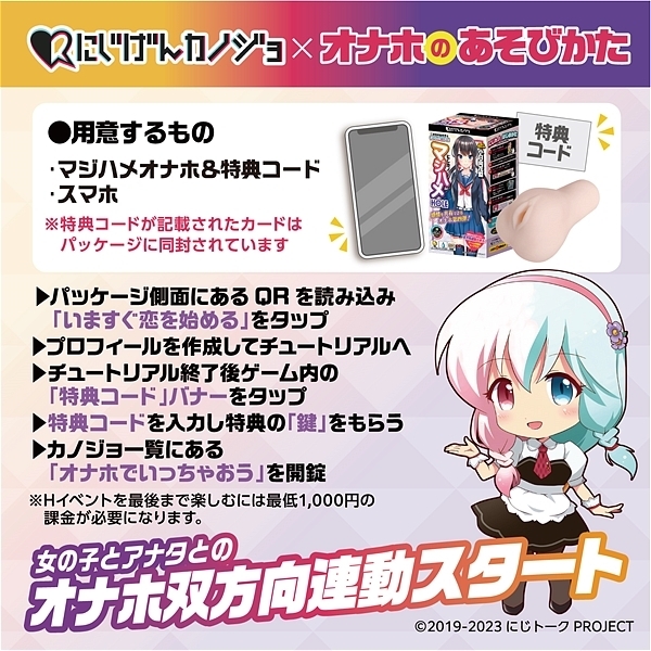 | 感情を共有できるオナホ第四弾!大人気チャットゲーム『にじげんカノジョ』から新たに2キャラクターが登場!花梨ちゃんの「ちゅるちゅるおま〇こ」を完全再現しました!二次元の女の子と感情を共有できるオナホールで、次元を超える気持ち良さを体感しよう!ゲーム内で使える特典コード付き!<にじトークPROJECT公式認定商品>●小日向花梨 |