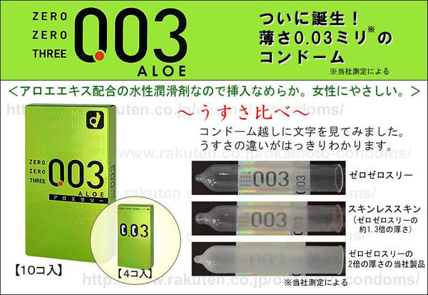 トップページ > コンドーム > 薄い・厚い > オカモト ゼロゼロスリー003 (アロエゼリー)