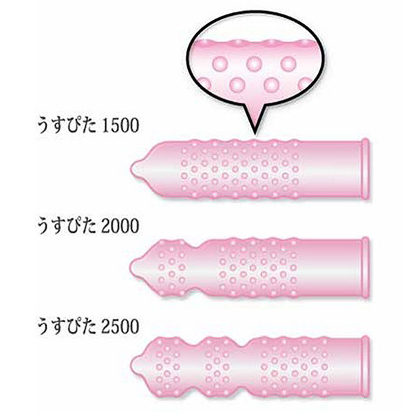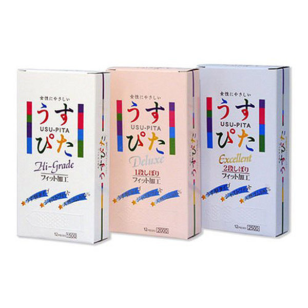 | その日の気分で楽しめる!ジャパンメディカルのロングセラーコンドーム「うすぴた」シリーズ3種パック(各12個入×3箱)。 超うす型ストレートの1500、カリ下一段絞りの2000、特殊二段絞りの2500、3種すべて三次元のツブ突起付き。 脱落防止加工も施されたジャストフィットな使い心地の天然ゴム100%コンドームです。 |
