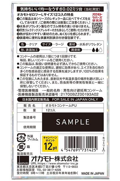 オカモトゼロツー うすさ均一0.02 Lサイズ(12個入り)