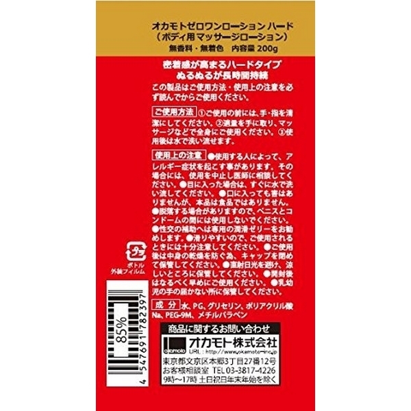 トップページ > ローション > ローション・潤滑ゼリー > オカモトゼロワンローション (ハード)