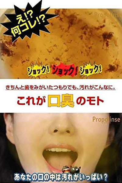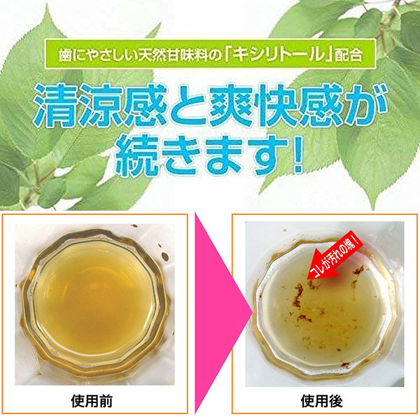 <成分>水、グリセリン(湿潤剤)、エタノール(溶剤)、PEG−60水添ヒマシ油(可溶化剤)、チャ葉エキス・プロポリスエキス・キシリトール・メントール・サッカリンNa(香味剤)、クエン酸・クエン酸Na・リンゴ酸(pH調整剤)、カラメル(着色剤)、メチルパラベン(保存剤)、香料 |