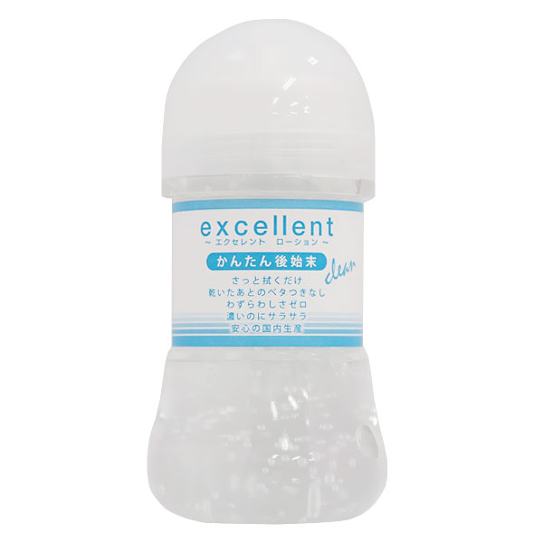 | サッと拭くだけで、乾いた後のベタつきなし!かんたん後始末ローション(150ml)。 サッと拭くだけで乾いた後のベタつきもなく、手間がかかる後処理のわずらわしさもゼロ!ゼリーのように濃厚なのに糸引きしにくく、サラサラの質感で肌なじみも抜群!お求めやすい150mlボトル入り、安心安全国内生産のエクセレントローションです。 |