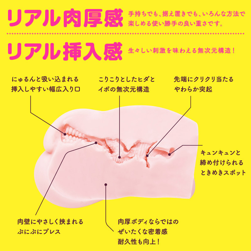 | ツルツルのアソコに形の良いヒップ!ふんわり素材と凝った膣内造形を共に味わうオナホール。 ねっとりと吸い付き、使うほどペニスに馴染む薄いピンクの素材を採用!超肉厚、置きオナもできてハンディにもなるトルソー型オナホールです。 股を開いた時の見た目にソックリで、お尻にまで続く割れ目がエロすぎ。 裏返しは破損の原因となるので、長く使うためにもやめておきましょう。 お掃除棒1本付き。 |