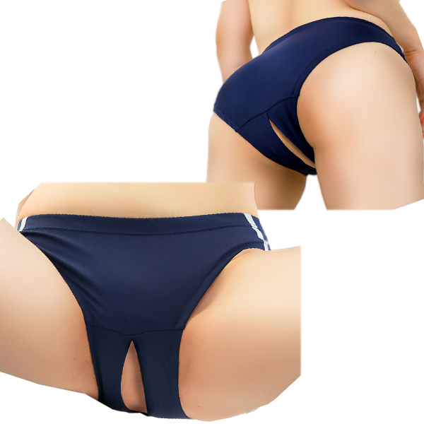 | 日本国内の工場で縫製され、国産のマイクロファイバー生地を使用した穴あきタイプのブルマ。 穴の両サイドが重なるように縫製しており、正面からは穴が見えにくいシルエットになります。 |