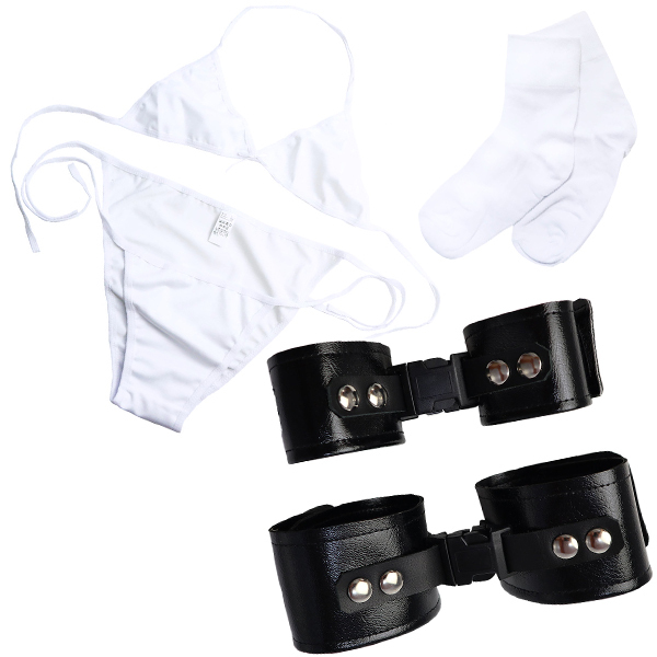 トップページ > SMグッズ・拘束具 > 枷・他(手足首・全身) > ggシリーズ 「カチッと手足」下着付きSMグッズ 〜ブラ・パンツ・ソックス付き〜