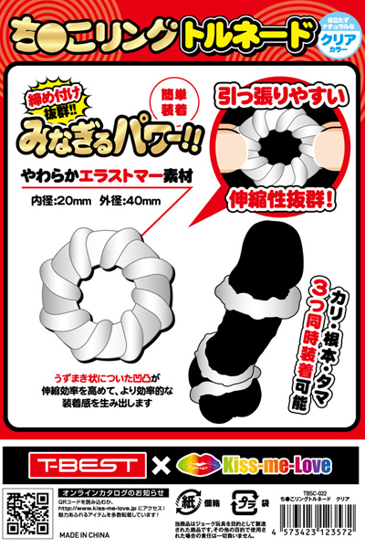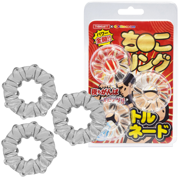 | <T-BEST×KISS-ME-LOVE>夜もがんばリングで大人気のやわらかメンズリング「ち●こリング」が、トルネードになって新登場!今度のち●こリングは「特殊形状3個セット」!トルネードデザインのリングを3つもセットにしました!うずまき状に巻き付いた凹凸が伸縮率を高めてより効率的な装着感を生み出します。 合わせて使えば三点同時装着が可能となります!高い耐久性のやわらかエラストマー素材に引っ張りやすい簡単装着デザイン目立たずナチュラルを演出するクリアカラー!締め付け抜群みなぎるパワー! |