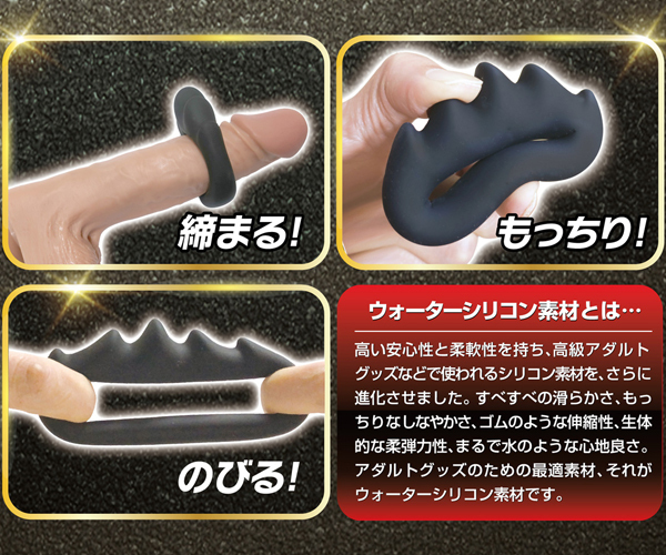 | 燃え上がる炎のような形状がお洒落で格好いい内径32mmのペニスリング。 肌触り滑らかでもっちりとした肌触りが特徴の新素材ウォーターシリコンを採用!ゴムのように伸縮性があるのにしっかり締め付け、それでいて水のような心地よさが魅力♪ウォーターシリコンならではの質感をぜひお試し下さい。 |