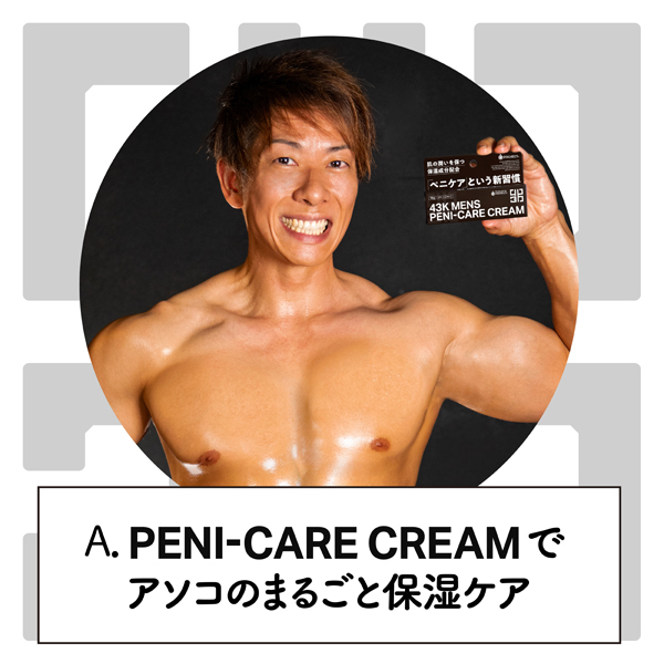 | プレイ後のかさつき肌に◎AV男爵しみけん氏がプロデュースする「43K」から、肌のかさつきや乾燥を保湿する男性のためのぺニケアクリームが新登場!ヒアルロン酸Naやアルギニン、フユムシナツクサタケエキスなど保湿成分を配合。 AV男優しみけん氏が長年の悩みを基に開発したクリームで、「ぺニケア」新習慣を始めよう!化粧品登録済 |