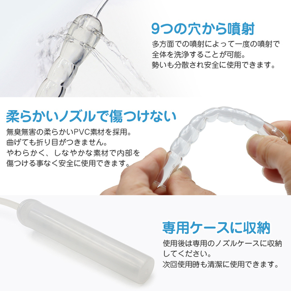 | オナホをいつでも清潔に!幅広い用途で使用できる!手動式ポンプ型多用途洗浄器。 9つの穴から多方面に噴射!多方面での噴射によって一度の噴射で全体を洗浄することが可能。 勢いも分散され安全にやさしく洗浄できます。 ノズルは無臭無害の柔らかいPVC素材を採用。 やわらかく、しなやかな素材で内部を傷つける事なく安全に使用できます。 45cmのチューブが使い勝手抜群。 オナホールの洗浄だけでなくプレイ前後の洗浄、注入プレイ等幅広く使用できるマルチポンプキットです。 使用後はノズルカバーを装着し清潔に保管できます。 |