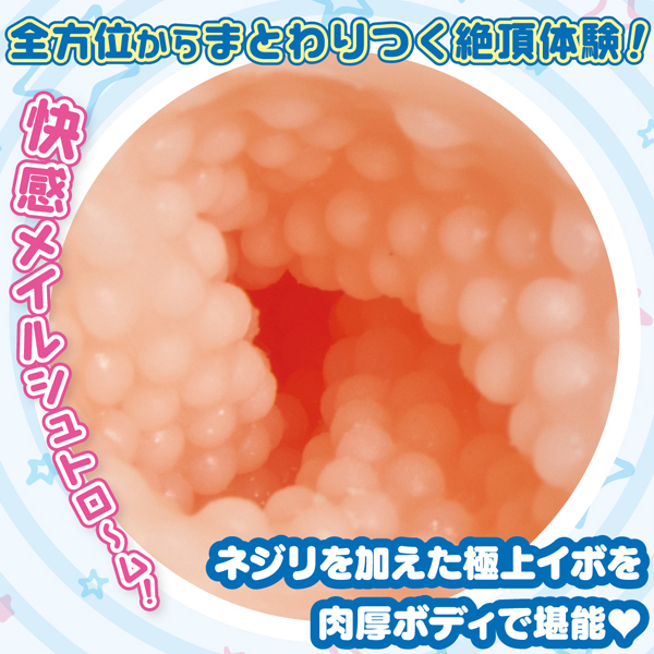 | ズッシリ500g近いボリュームのある非貫通ホールで、トルネード状にギミックにビッシリとキレイな小粒イボを配置し、全方位から極上の刺激とバキュームを楽しめる「ずまき×ぐるぐ〜る」♪内部は壁全面に配置されたキレイなツブイボをトルネード状にすることで、360°から高刺激を感じられる構造で、ツブツブ感が無限ループし、捻りによる不意の締め付けを感じつつ、最奥の肉厚バキュームスポットでエア抜きすれば、かなりの絡みつき感を纏うことで、射精感が高まる構造になっています。 |