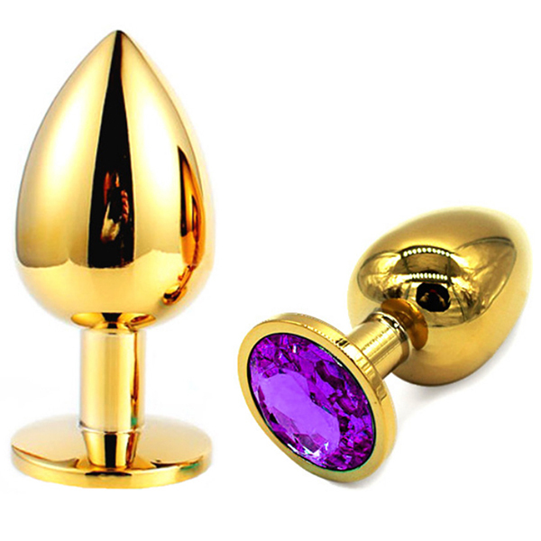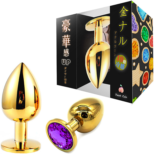 | 金色のプラグにキラキラとしたゴージャスな輝き!メタルの重量感・冷感がアナルを刺激し見た目も華やか。 サイズもS・M・Lの3サイズあるため、お好みのサイズとカラーでお楽しみください。 Mサイズ、パープル |