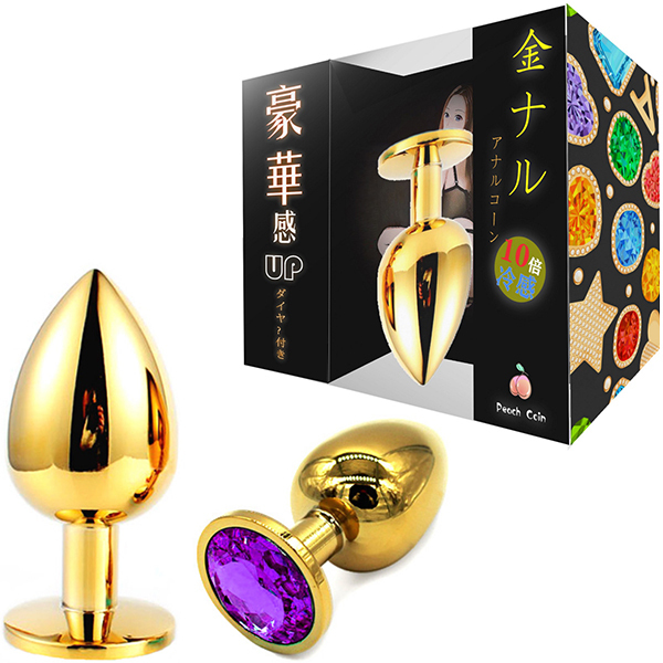 | 金色のプラグにキラキラとしたゴージャスな輝き!メタルの重量感・冷感がアナルを刺激し見た目も華やか。 サイズもS・M・Lの3サイズあるため、お好みのサイズとカラーでお楽しみください。 Lサイズ、パープル |