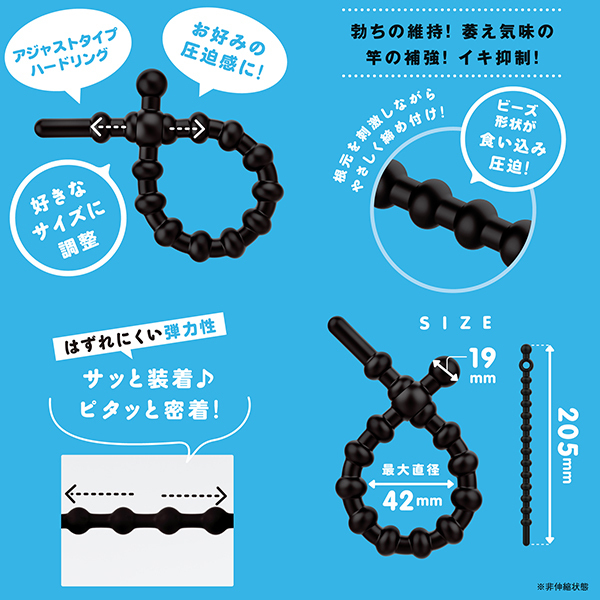 | 超!ぷにっとりんぐからサイズの調整が出来るアジャストタイプが登場。 ストッパーの凹凸も心地よい刺激となって楽しめます!自分のサイズに合わせて、自分好みの締め付けで、サッと装着♪ピタッと密着!ハードverは臭いのない高品質ハードシリコンでやみつきの締め付け!勃ちの維持!萎え気味の竿の補強!イキ抑制!自分サイズに合わせられるので皮戻り防止にも便利です。 ドバーっと出る感UPできゅーっと超極楽発射! |