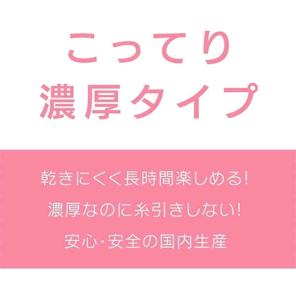 | Ag+でエクセレントローションが新しく生まれ変わりました。 銀イオン配合で消臭・抗菌・除菌もでき、より衛生的に使用できるようになりました(消臭・抗菌・除菌は人体に対するものではありません)。 こってり濃厚タイプは、乾きにくく長時間楽しめます。 また、濃厚なのに糸引きしません。 狭い穴のホールにも注ぎやすいノズルキャップ仕様。 超大容量600ml。 安心の国産素材&国内生産。 |