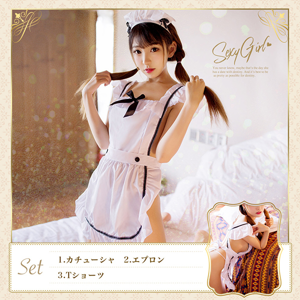 | ふりふりのギャザーフリルでガーリーに仕上げるメイドコスプレ。 バックスタイルがあらわになる魅惑的なデザインです。 萌えきゅんな雰囲気のあるメイドですが、モノトーンでまとめることでやりすぎない甘さが◎フロントとバックのギャップがセクシーさを引き立て、シアーな透け感も妄想を掻き立てます。 非日常な刺激を感じられるランジェリーコスプレです。 |
