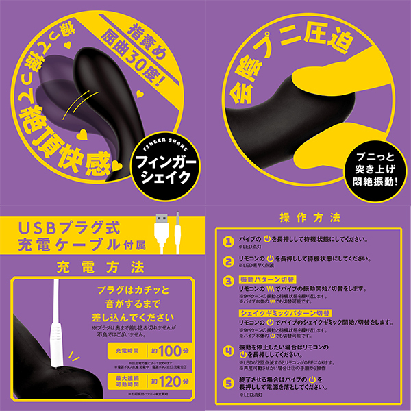 完全防水 遠隔絶頂 メス堕ちバックバイブ9 (フィンガーシェイク)