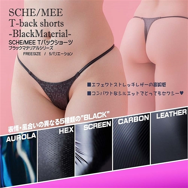 素材感が異なる黒のコーティング素材を使用したTバックショーツ「BLACKMATERIAL(CARBON)」です♪カーボンファイバーをイメージした彩ストライプ柄で2WAYストレッチ生地を採用!キリっとシャープな印象です♪